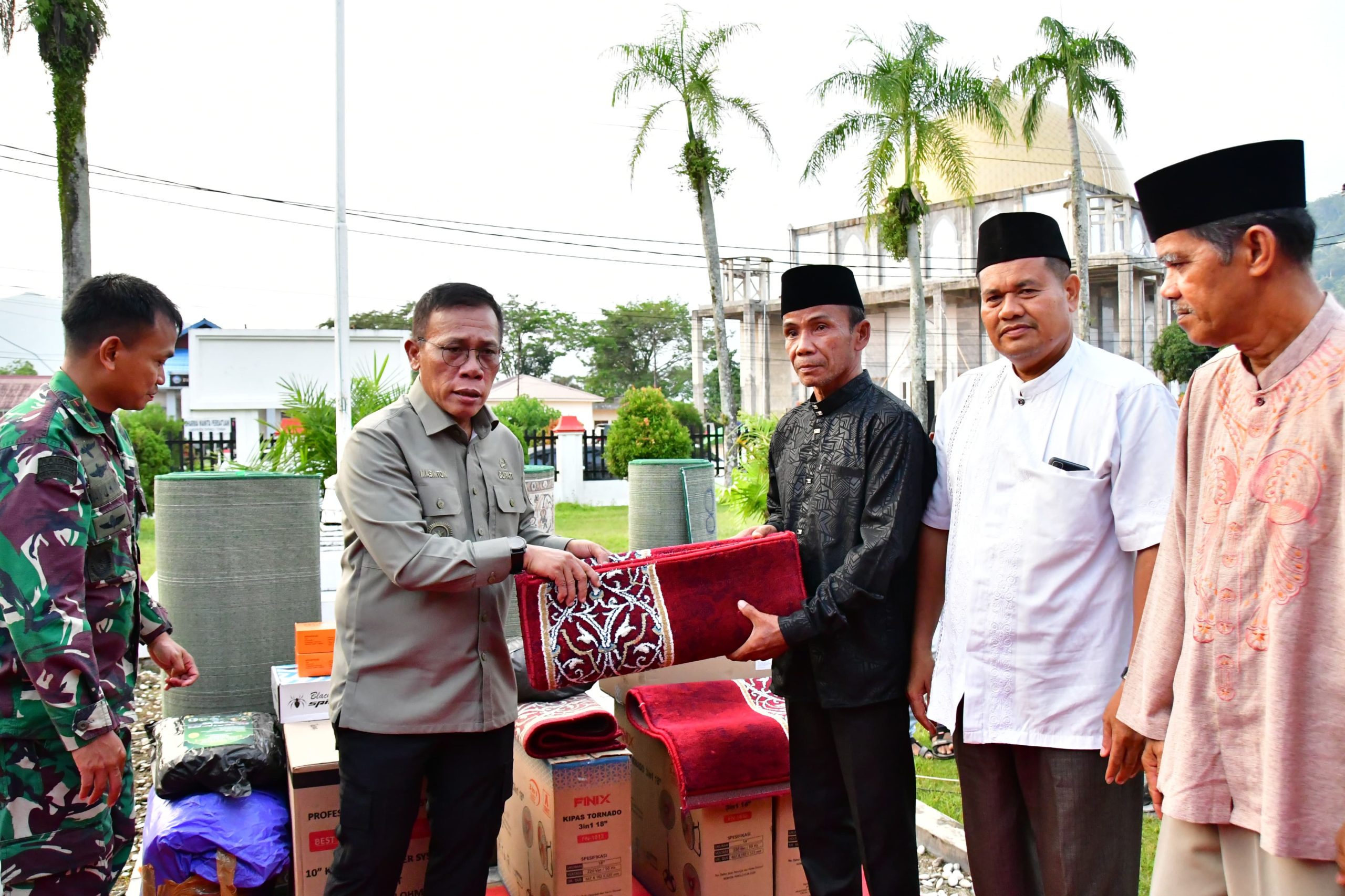 Acaranya, diwarnai penyerahan bantuan untuk 16 masjid yang terdampak bencana dari Biro Kesra Provinsi Sumatra Utara, dan juga penyantunan 100 anak yatim.